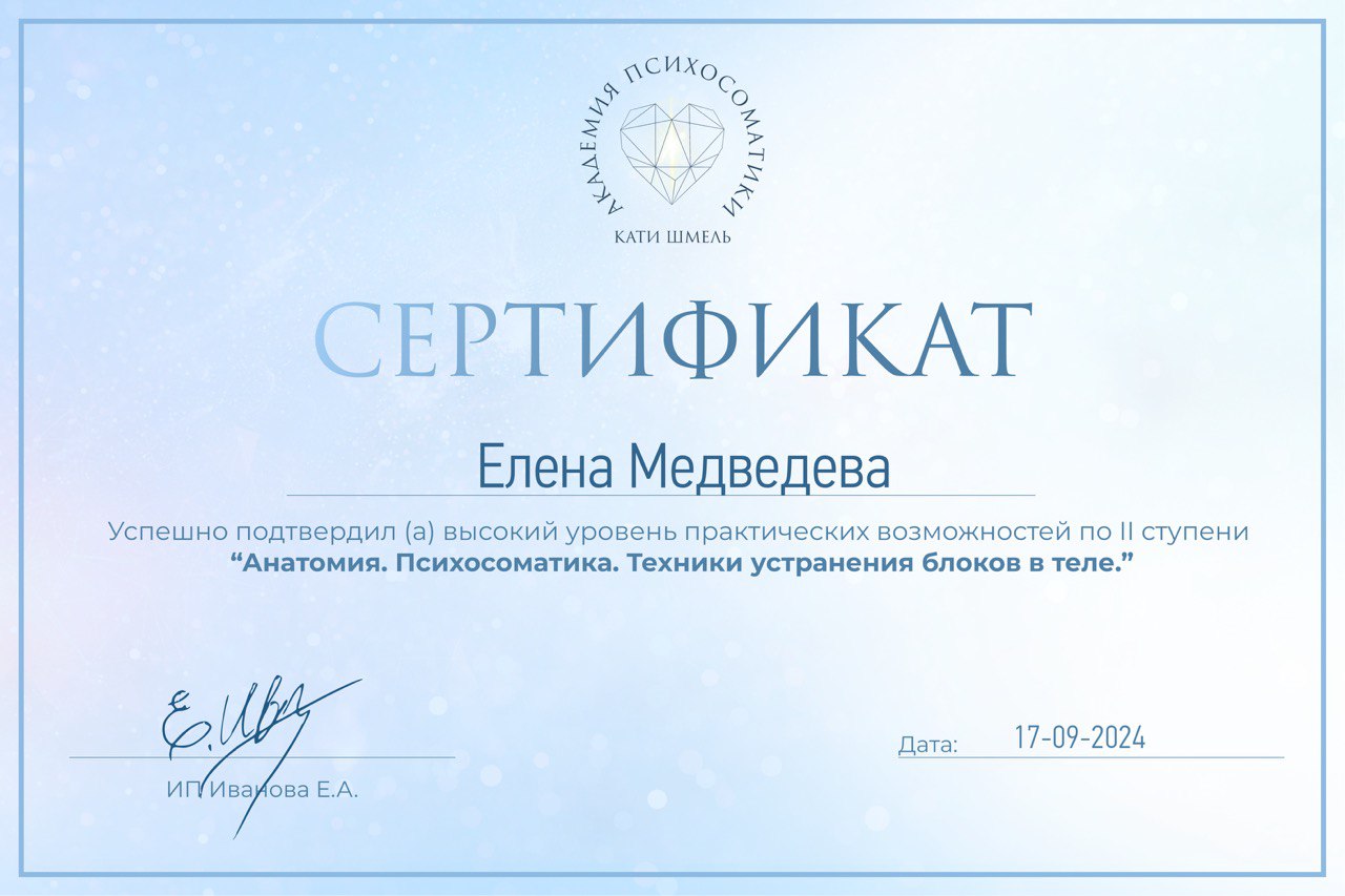Каждая непрожитая эмоция отпечатывается внутри и со временем превращается в напряжение, болезнь или внутренний блок. Через тело мы можем добраться до глубины бессознательного, найти эти «застревшие» программы и мягко освободить пространство для нового.